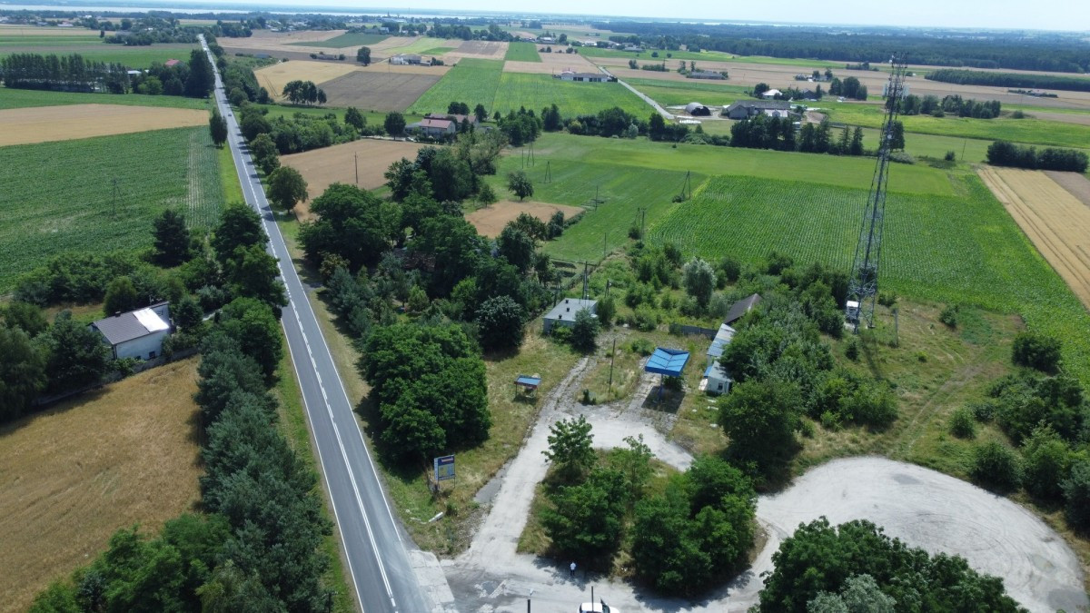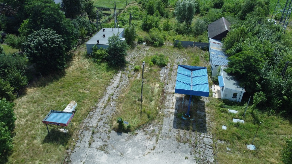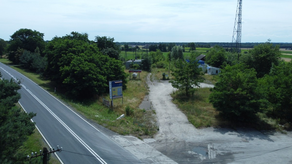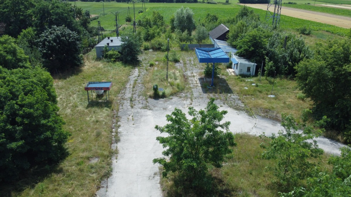 • Na uzbrojonej działce znajduje się nieczynna stacja paliw wraz z budynkiem zaplecza, które stanowią doskonałą bazę pod dalszą inwestycję.