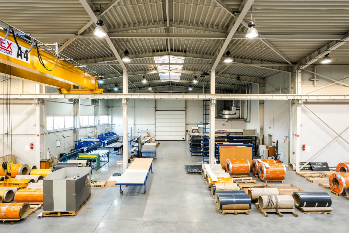 Doskonała infrastruktura - w pełni zagospodarowany teren, wygodny parking, utwardzone place, w części magazynowo- produkcyjnej dwie hale wzniesione na planie litery T, posadzki w halach z betonu zbrojonego, utwardzone. W hali magazynowej zamontowana suwnica o udźwigu 12,5T i szerokości 20m. W narożniku hali znajduje się pomieszczenie kotłowni i pomieszczenie zbiorników oleju. W kotłowni dwa urządzenia grzewcze firm Buderus i Weissman.
