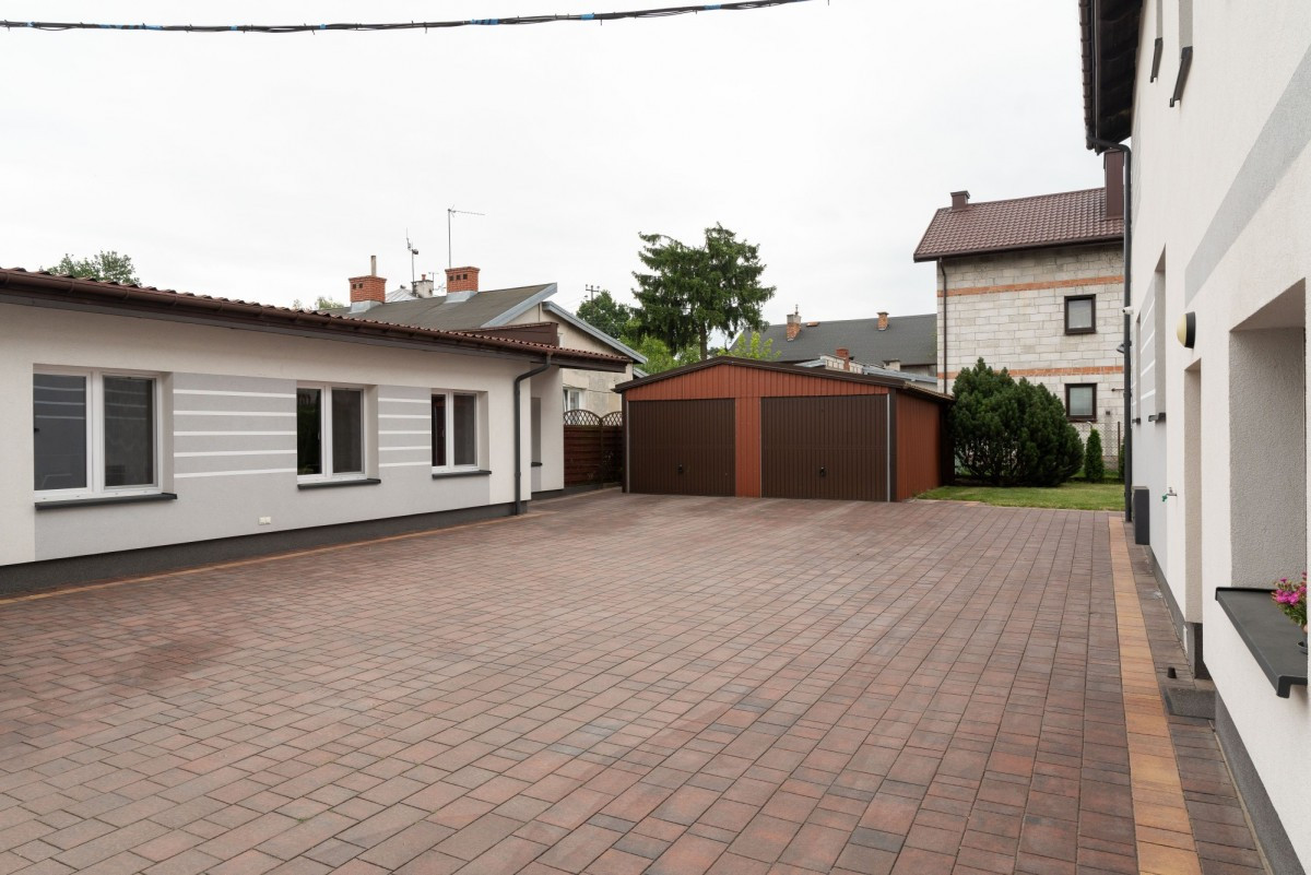Za budynkiem mieszkalnym znajduje się garaż na dwa samochody.