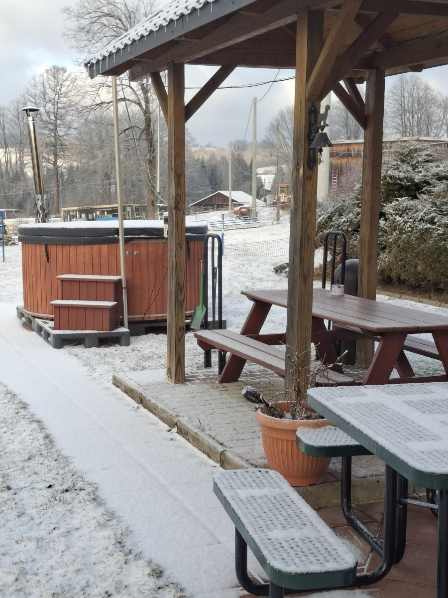 hydromasaż na zewnątrz opalany drewnem