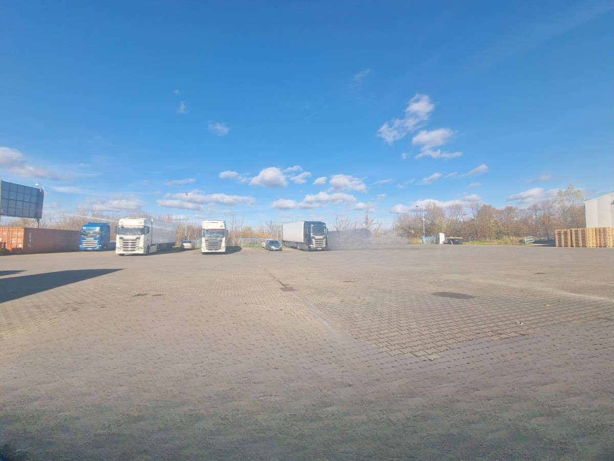 Utwardzony plac manewrowy o powierzchni do 12 500 m² z kostki brukowej o nośności pod TIRy, z możliwością parkowania TIRów i naczep.