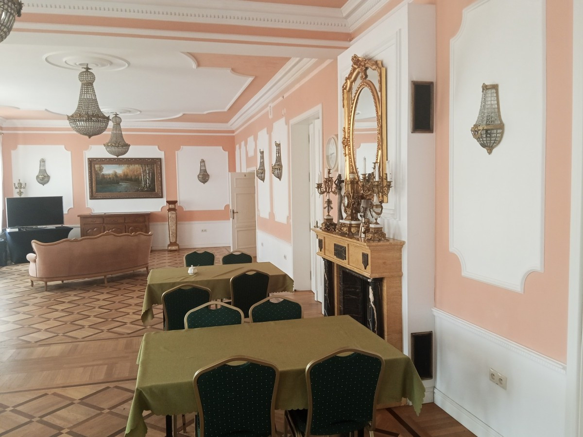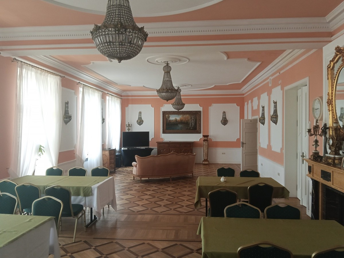 - Na parterze znajdują się sale bankietowe i konferencyjne, na piętrze oraz poddaszu - część mieszkalna