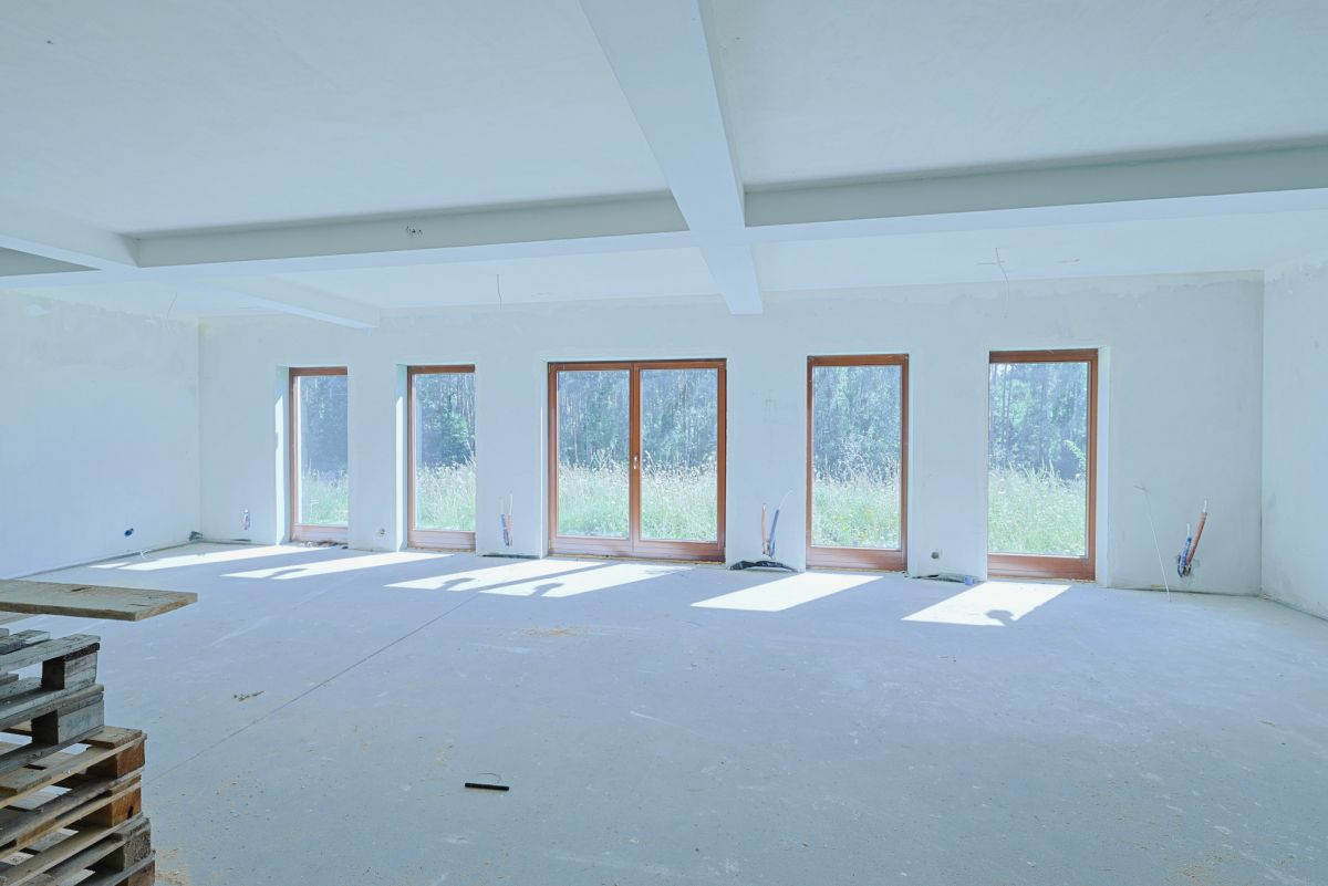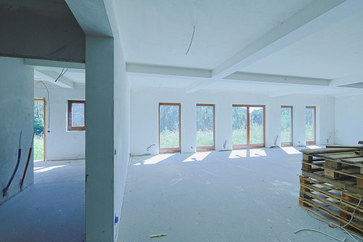 - Ściany działowe, tynki oraz posadzki gotowe do wykończenia.