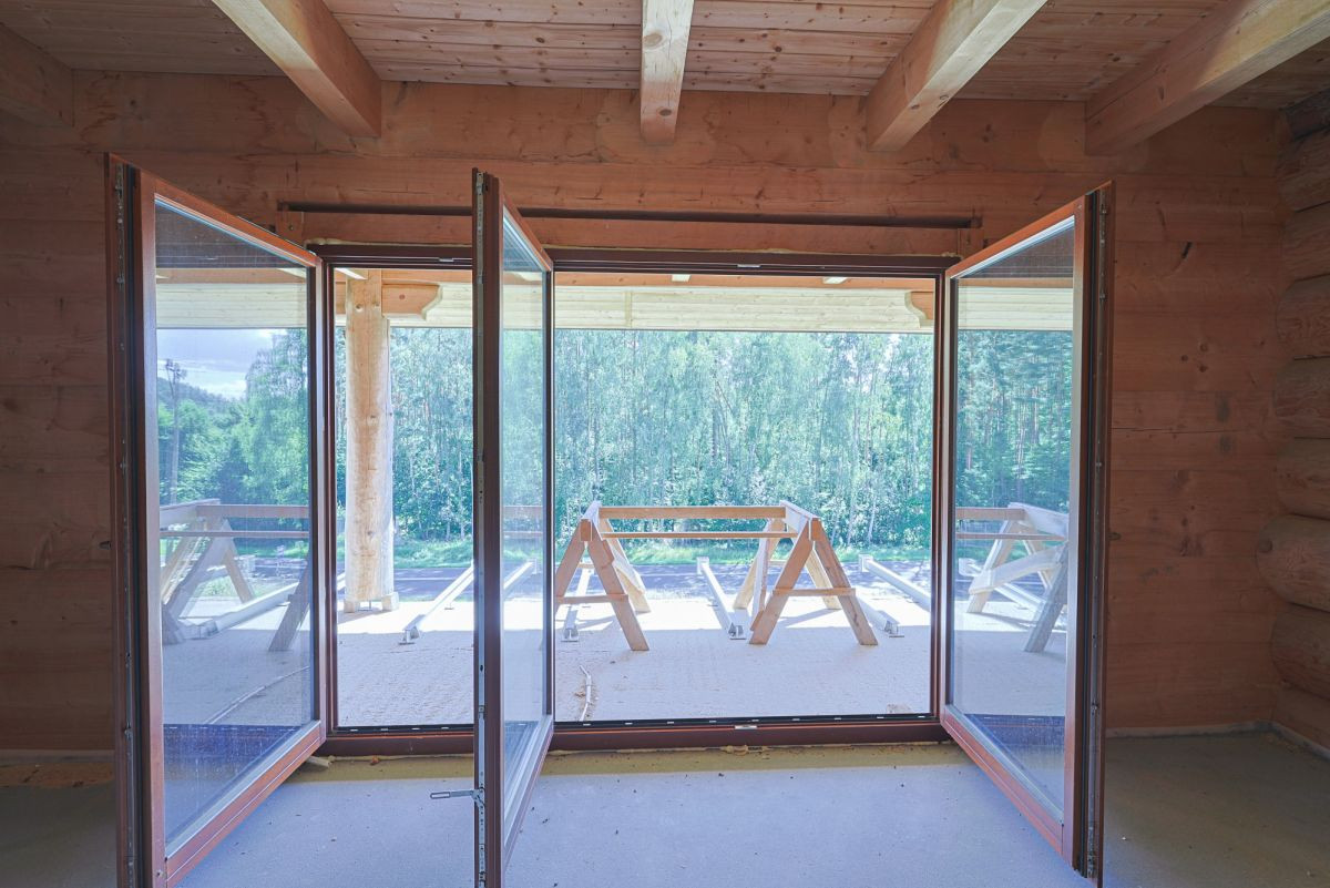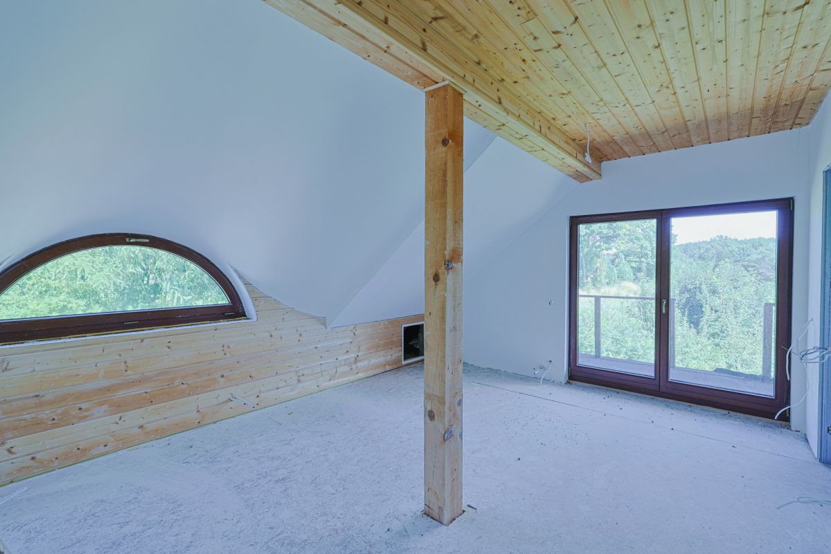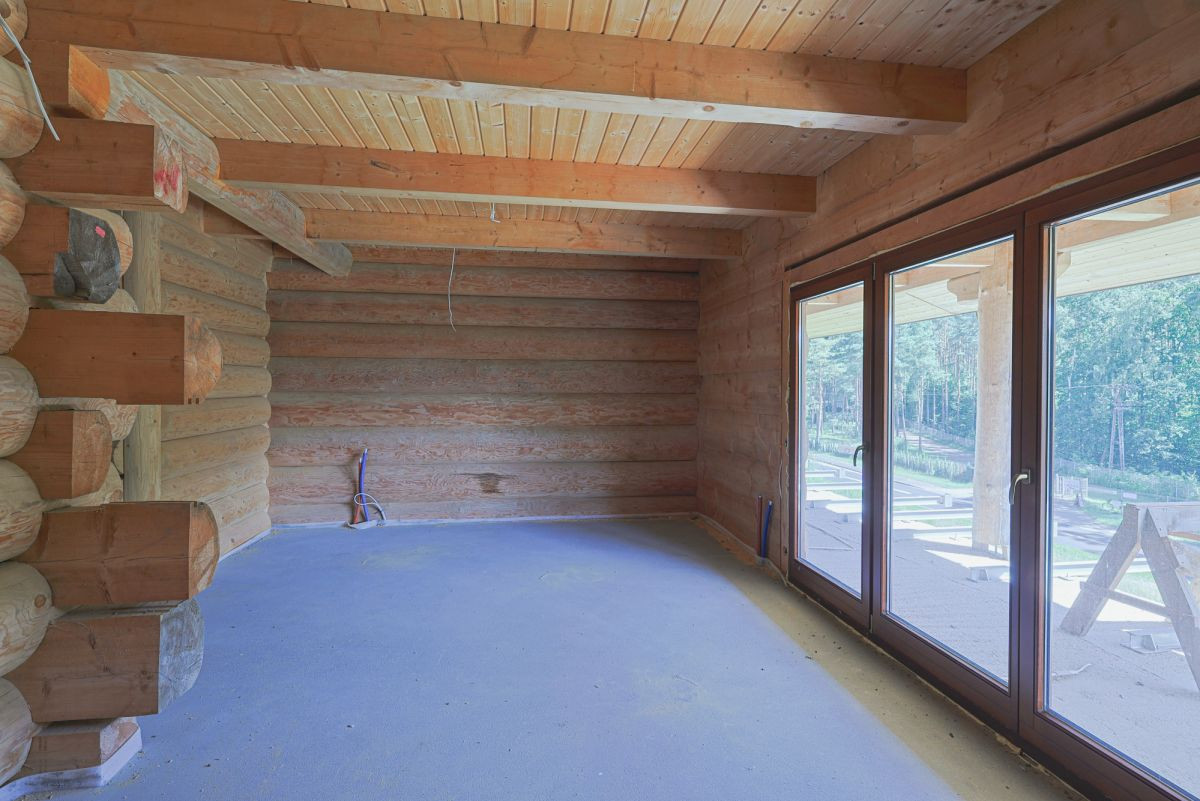 - Drewniane sufity i okna z drewna meranti z szybami dwuwarstwowymi.