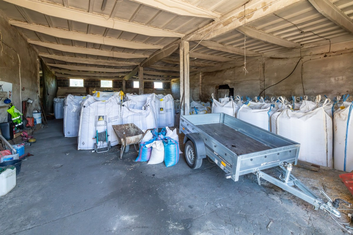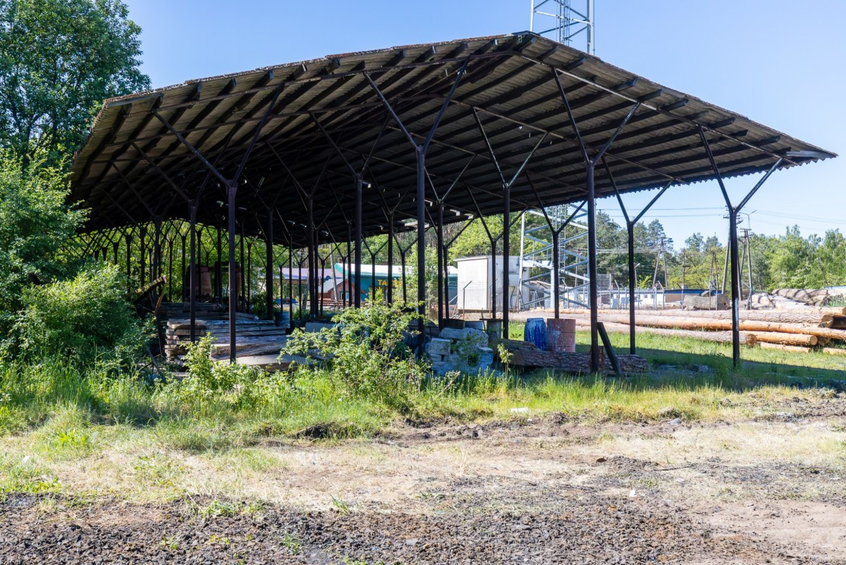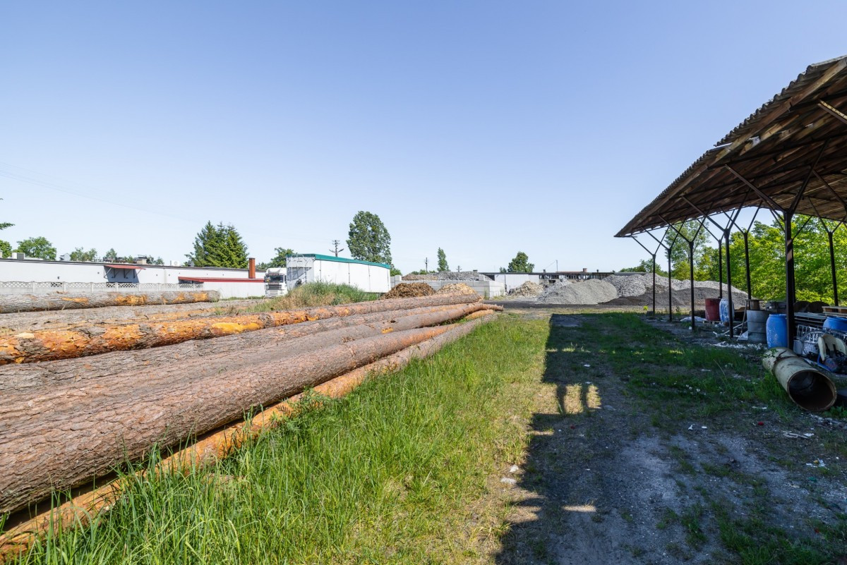 Na terenie znajduje się także wiata z konstrukcji metalowej, idealna na dodatkowe potrzeby magazynowe lub produkcyjne.